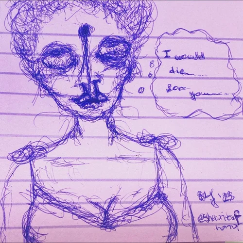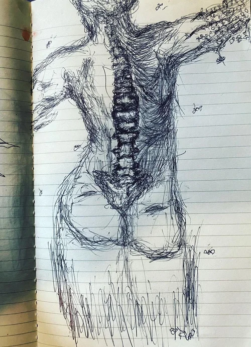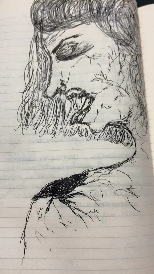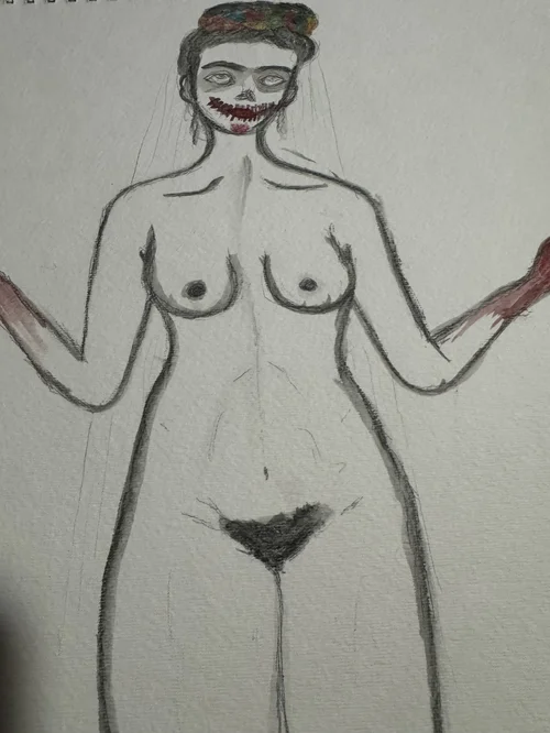 This was a friend of mine who I shared a myriad of interests with, one of them being horror movies. When he learned I loved making morbid anatomy art, he agreed that he’s like to see himself as that himself. My art is showing the parts of yourself that most find most appealing, and we dissect them. In this art piece I’ve removed his eyes, and a part of his lip.